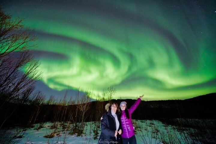 Included: Photography tips, guide in English, Northern Lights Chase by minivan, warm overalls, boots, coffee,tea, muffins, pictures sent to your email.